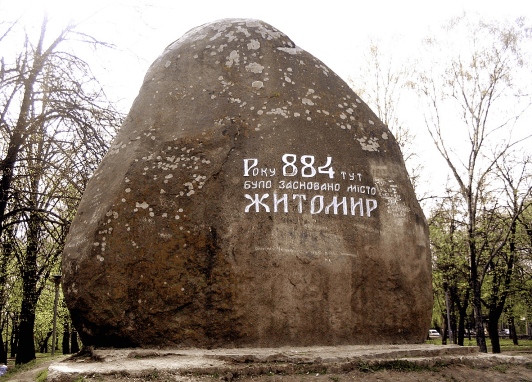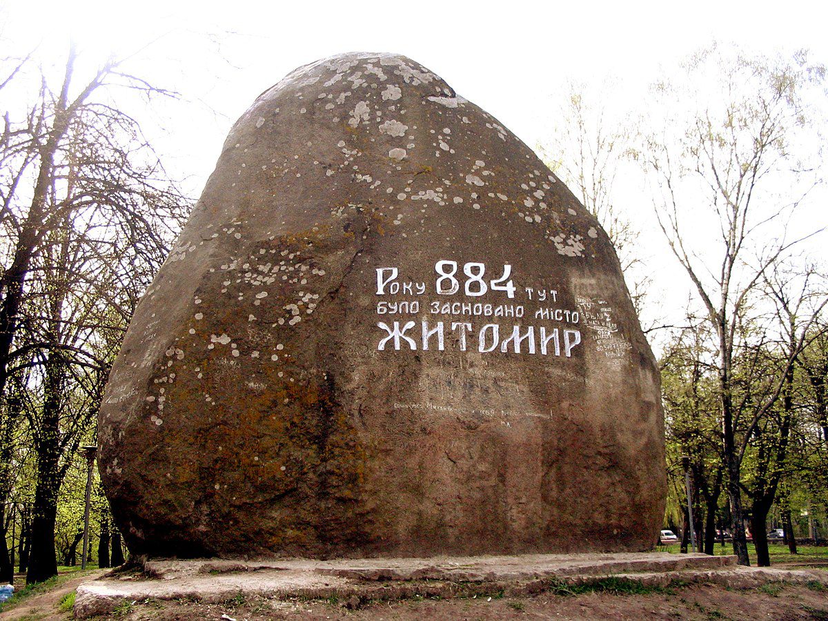 Роком заснування Житомира вважається 884. Щодо назви, то існують дві основні версії. Згідно з першої, назва міста походить від імені руського дружинника київських князів Аскольда та Діра – Житоми́ра, який пішов від князя Олега і оселився на скелях біля річок Тетерів і Кам’янка. Згодом над глибоким урвищем над річкою Кам’янка побудували дерев’яний замок (зараз у цьому місці розташований філіал Житомирського обласного архіву). За іншою версією на місці сучасного Житомира були розташовані племена житичів, що входили в союз древлян. Основним їх заняттям було вирощування жита і хліборобство, тому про місцевість казали “мир житичів” або “мир і жито”. Є свідчення про те, що в давнину навіть у центрі міста сіяли жито і ячмінь. Після повстання 945 року території, де розташований Житомир, повністю увійшли до складу Київської Русі.